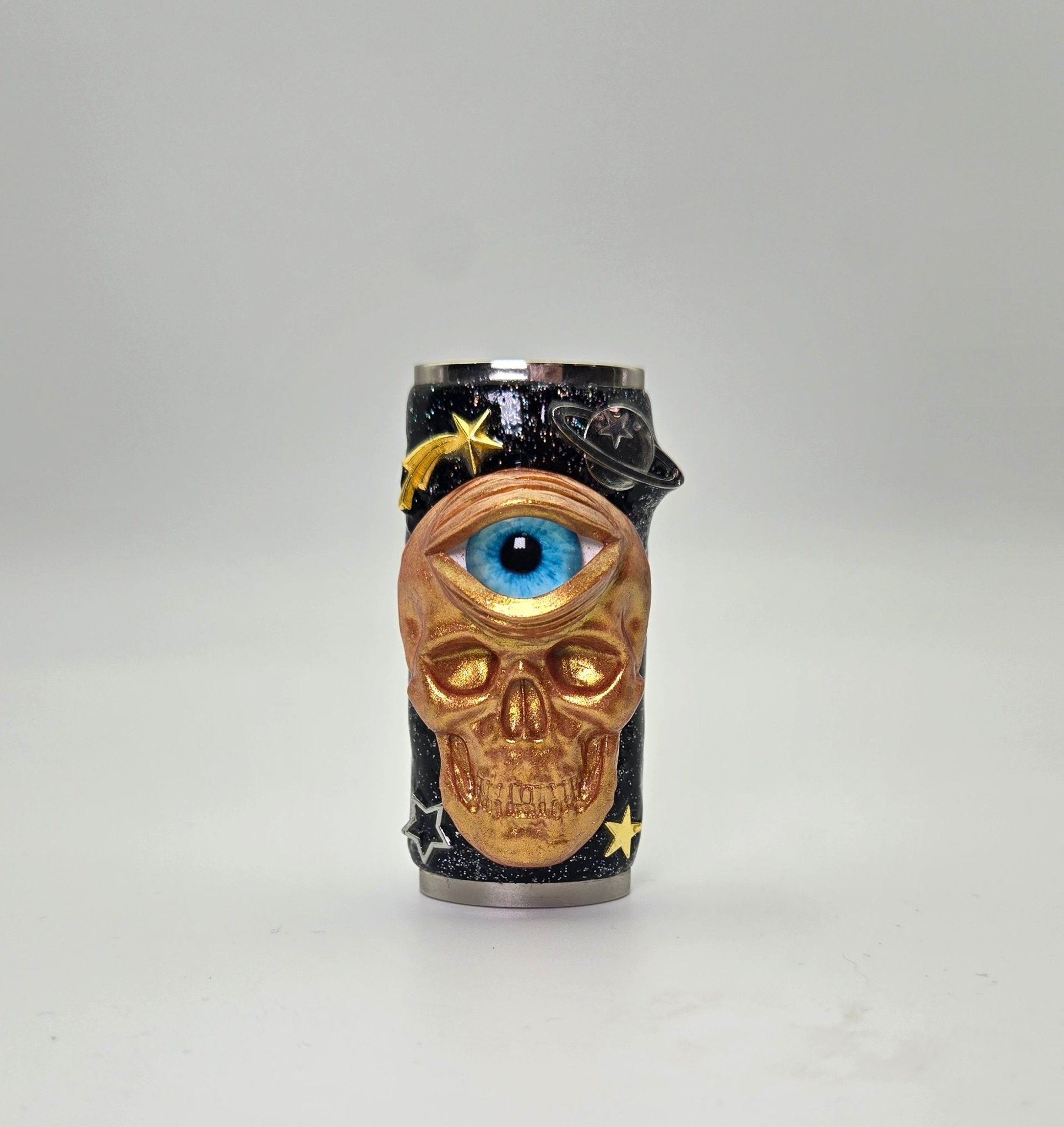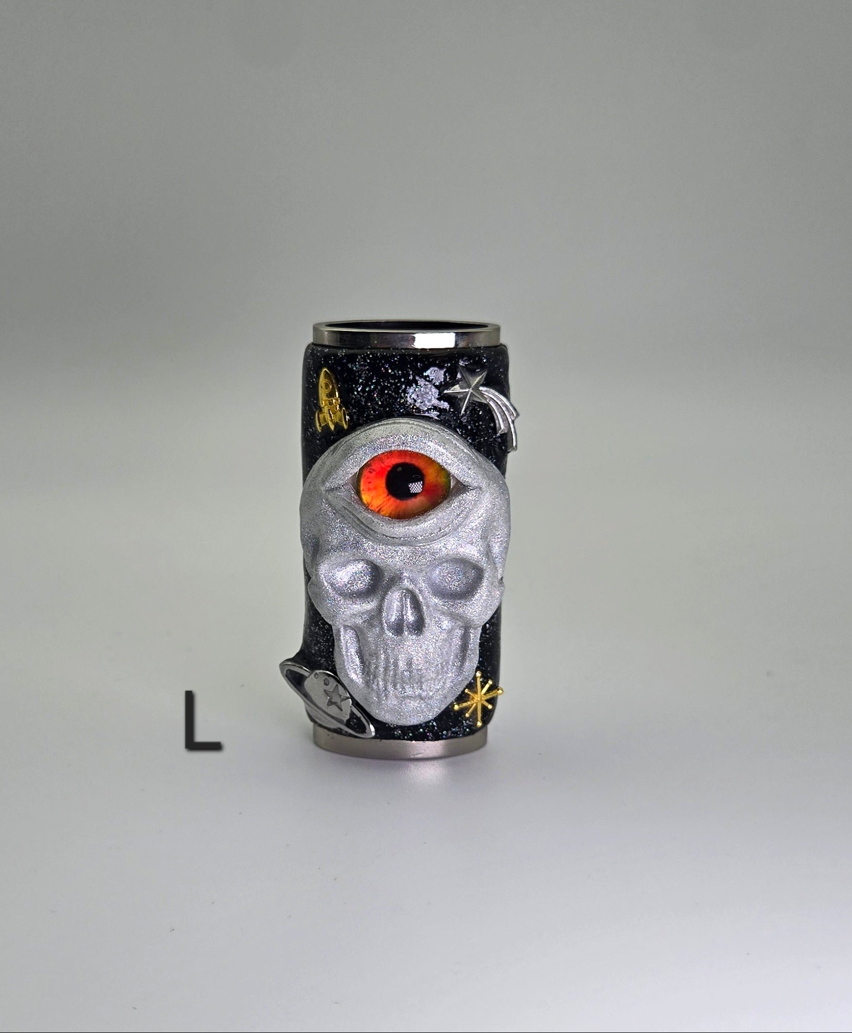 Material; polymer clay, hand crafted on metal sleeve and coated with UV resin.